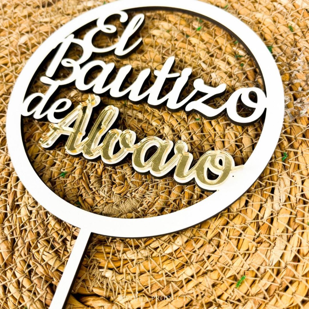 Topper bautizo personalizado madera y espejo